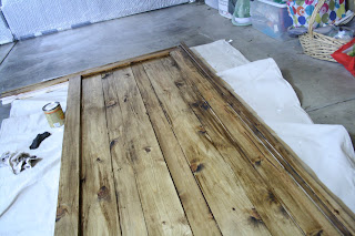 Well, like a good girl, I wore rubber gloves to stain. What I didn't count on was that one of the gloves would break, and that my lovely poly AND stain mixture would get all over my cute new Shellac manicure!